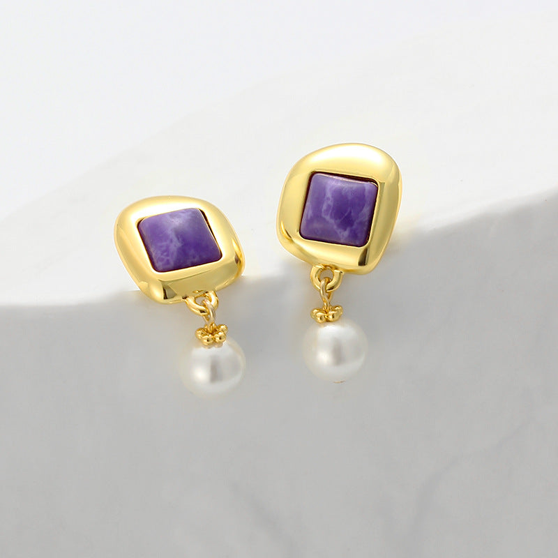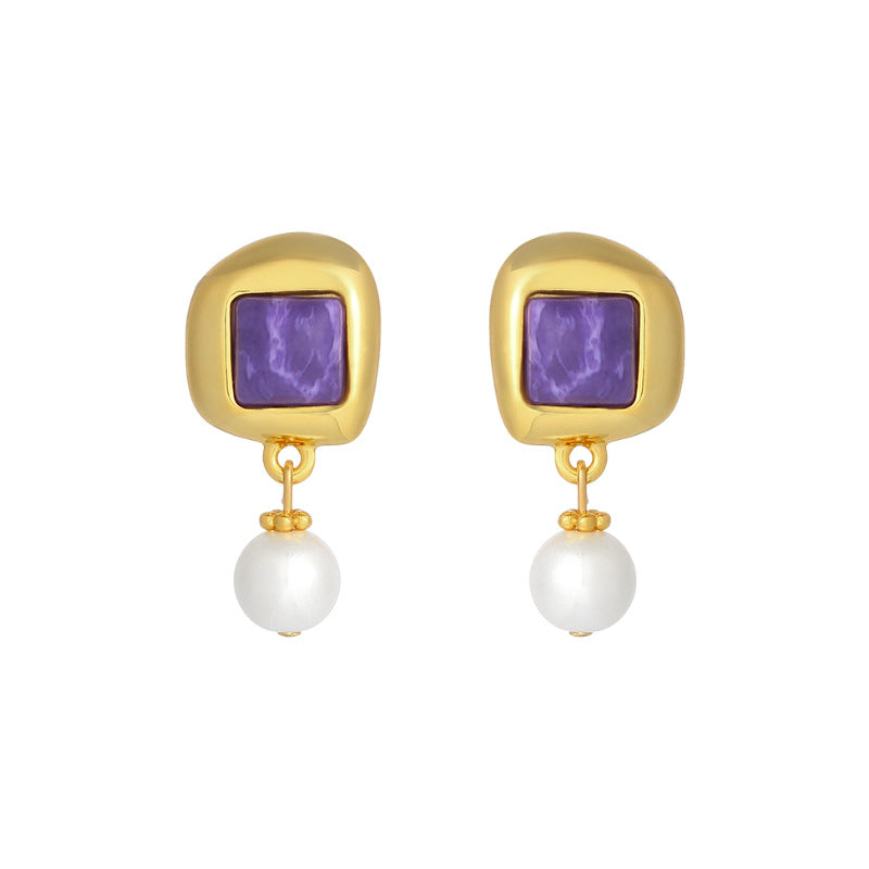 These artisan earrings unite the deep, mesmerizing tones of purple mineral stones with the luminous elegance of pearl drops. Crafted with meticulous attention to detail, each pair showcases authentic gemstones in rich amethyst shades, balanced by the soft radiance of freshwater pearls. The thoughtful composition makes these pieces versatile enough for daily sophistication yet refined enough for formal settings. A testament to quality mineral jewelry design, they appeal to discerning wearers who value both geological authenticity and polished aesthetic refinement.